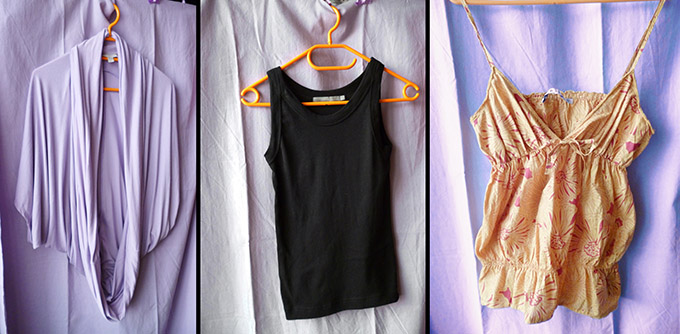 De la gauche : « manches » AXARA 2,5€ , top noir : 1,5€, top froufrou 2,5€
