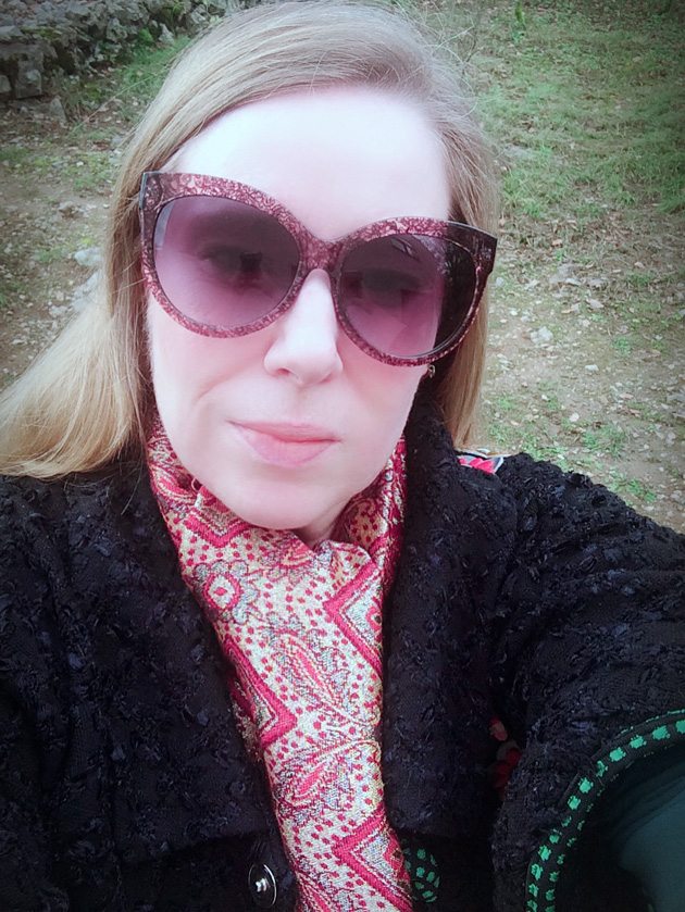 J’ai choisi mon vieux top à sequins vintage qui fait toujours le job, assorti à une étole en soie