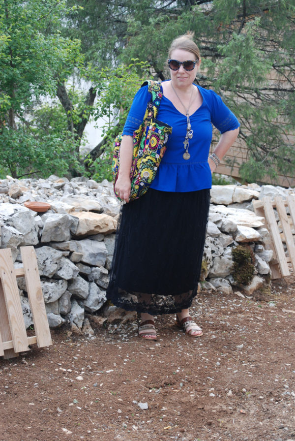 J’ai réussi à m’arrêter 10 minutes en bord de rivière pour vous shooter mon look du jour : « retour de marché ».