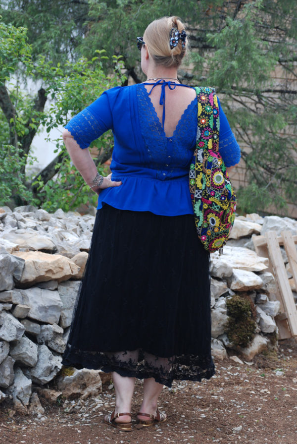 Bilan, ça passe mais il baille un peu si j’attache le lien dans le dos, ce qui n’est pas très joli. Je pourrais peut-être le faire reprendre un peu par ma voisine couturière…