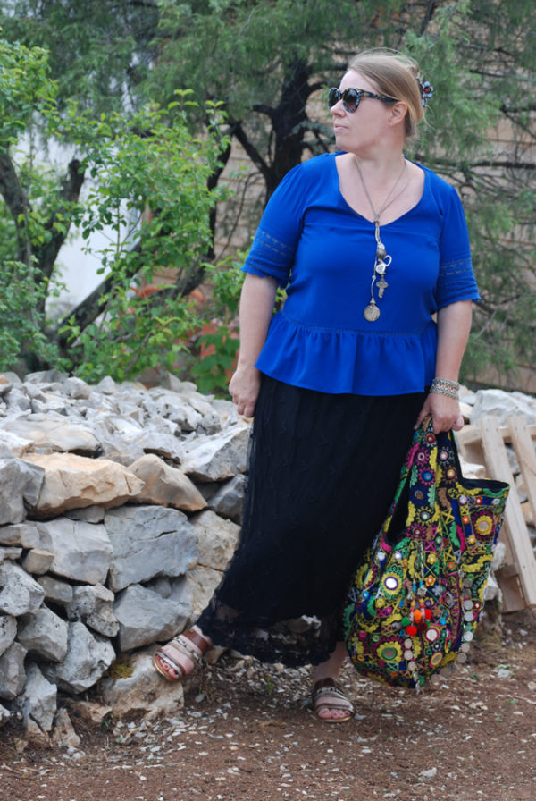 Disons que lorsque je ne suis pas super inspirée, je revêts le basique look noir et blanc (ici une jupe noire en dentelle et un top plumetis) que j’accessoirise avec pleins de couleurs. Ici j’ai privilégié la combinaison du rose/rouge avec mon vieux perf en daim C&A, mon sac bonbon Zoé la Fée et mes boots brodées dénichées sur vinted. Ajouté à un sautoir bohème et un chapeau brodé, voilà que mon petit look basique est revisité. Après on apprécie ou on déteste le côté Too Much…