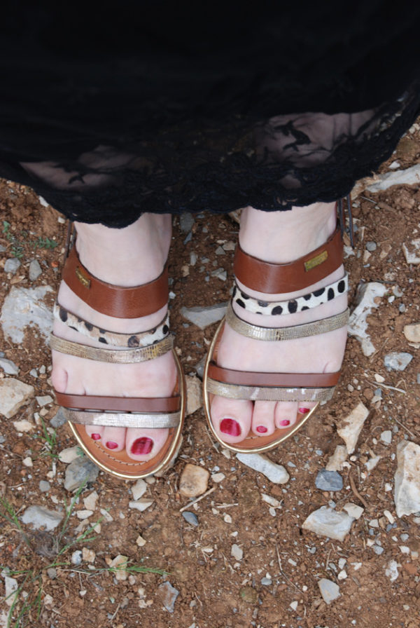Je suis restée sobre avec des sandales noires, mais pas n’importe lesquelles, des Apologie Paris, une prestigieuse marque parisienne,