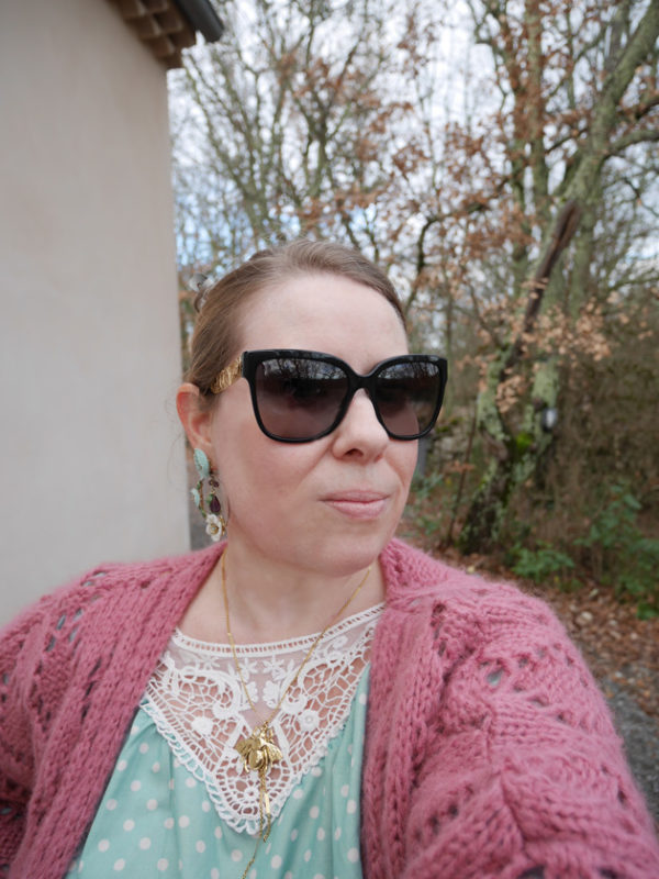Au cou, mon collier du créateur parisien Lotta & Djossou que j’avais pu obtenir avec une réduction de 30%, ce qui n’arrive pas souvent. En tout cas, leurs bijoux sont très qualitatifs, n’hésitez pas à vous faire plaisir si le style vous plaît. Enfin, voici mon nouveau sac Zoé la Fée, en cuir d’agneau, acheté en seconde main sur vinted. Il a remplacé mon vieux sac rose très abîmé (l’inconvénient du daim) qui est parti au recyclage pour une nouvelle vie.