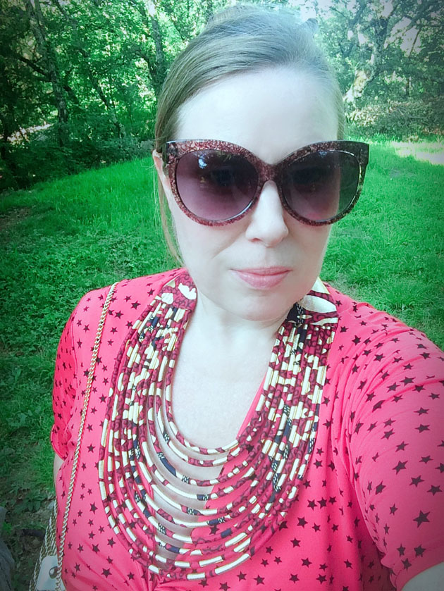 Je l’ai associée à une vieille jupe qui fait le job et à des bijoux de créateurs Made in France que j’aime énormément.