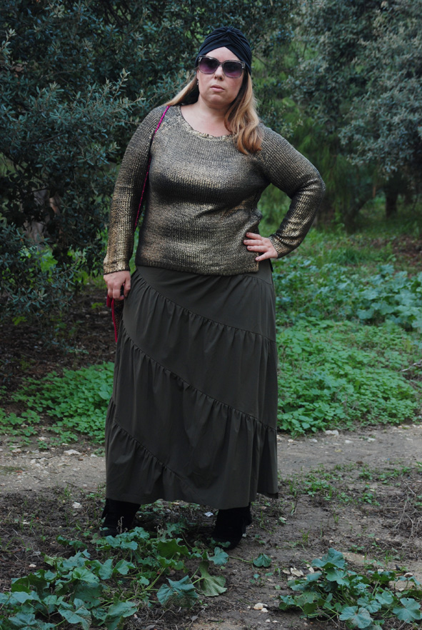 Peu de nouveautés dans cette tenue, juste une association entre des pièces jamais montrées ensembles et je trouve que ça match bien non? Mon pull doré date de l’automne 2013, il ressemble à celui de H&M que j’ai cherché désespéramment partout mais il est produit par Jacqueline Riu et ma jupe vient de mon déstockeur favori.