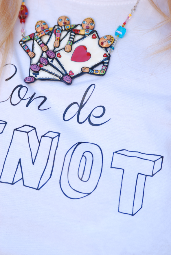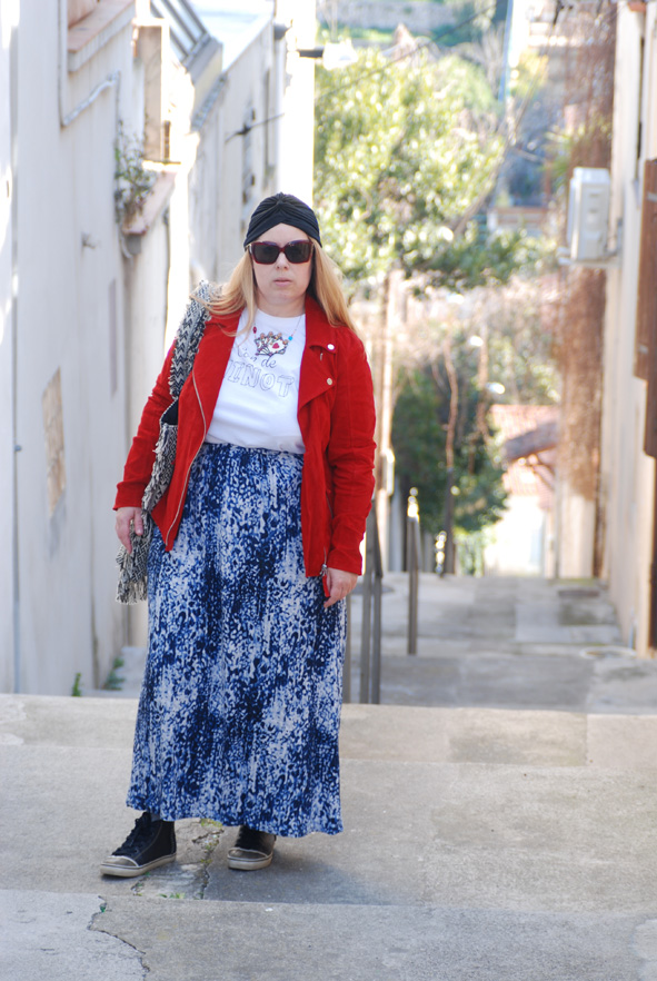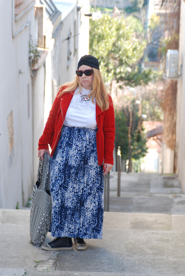 Concernant ma tenue, je porte une jolie robe bras nu IKKS. Vous n’en verrez pas l’essentiel car il fait trop froid pour se dénuder mais il y a des détails brodés sur les bretelles qui lui confèrent tout son charme. Je l’ai accessoirisée avec mes « basiques » du moment, à savoir mon sac Pull & Bear, mon perf rouge C&A, un top dentelle H&M et un chapeau rouge (pour faire causer les curieux = ça marche bien).