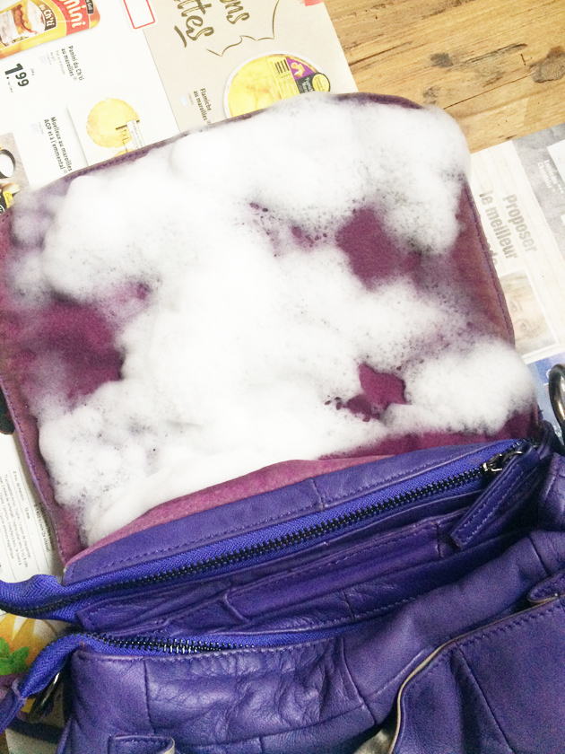 S’il est sale/tâché (ce qui n’était pas mon cas), on le lave avec un savon pour cuir et une éponge humide.