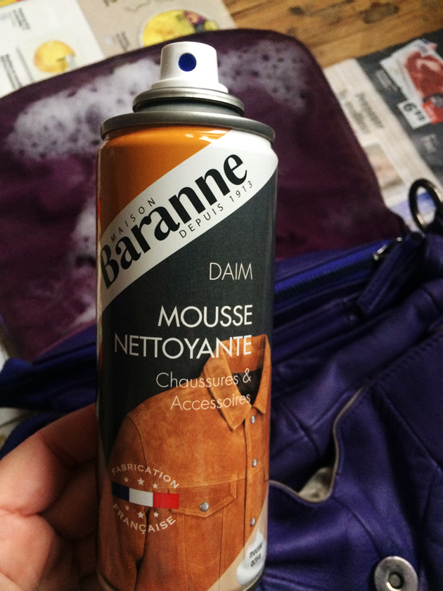 Ici, mon rabat en daim était noirci. J’ai acheté une mousse spéciale « daim ».