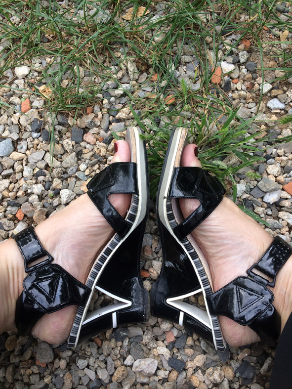 Aux pieds, je porte des prototypes d’un créateur marseillais qui a malheureusement mis la clé sous la porte. Il travaillait avec Lanvin, donc la qualité était top et comme j’ai eu la chance de les acheter en vide atelier très confidentiel, elles ne m’ont coûtées à l’époque que 20€! Alors oui elles ont bien vécu, mais je ferais en sorte de les conserver le plus longtemps possible.