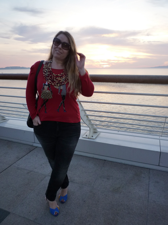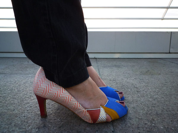 Je porte un top René Derhy qui a plus de 5 ans avec mon nouveau collier sénégalais en wax trouvé à la foire. Aux pieds, j’ai fait honneur à la marque qui nous a invité en portant la collection été très colorée!