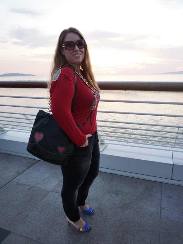 J’ai associé le tout avec mon sac en cuir irisé de mon créateur