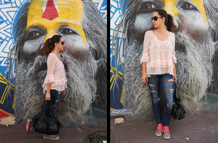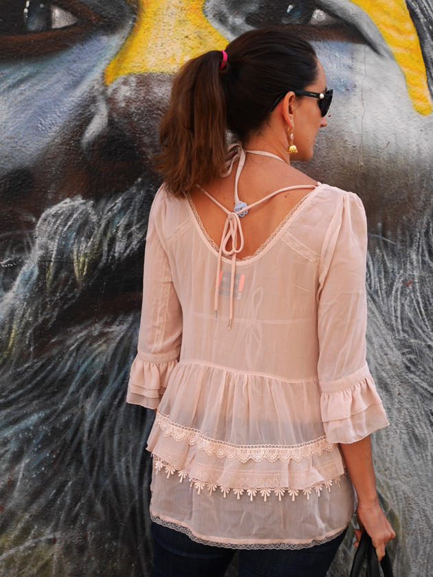 Comme elle est très vaporeuse, je la porte avec un jean en dessous (les fesses à l’air ce n’est hype que sur Insta, et IG ce n’est pas la vraie vie…