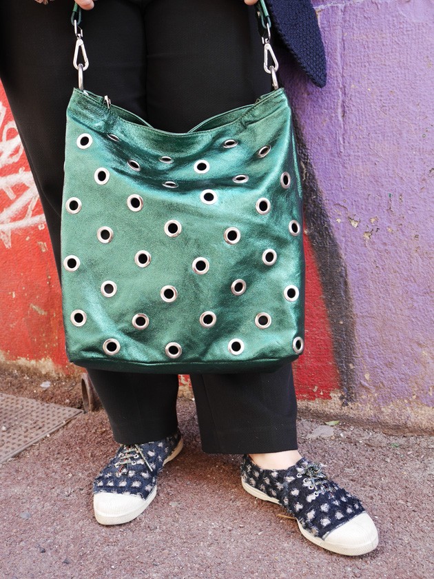 Je l’ai accessoirisée avec ma paire de BO fétiche pakistanaise, un sac en cuir irisé de mon fournisseur italien Marant