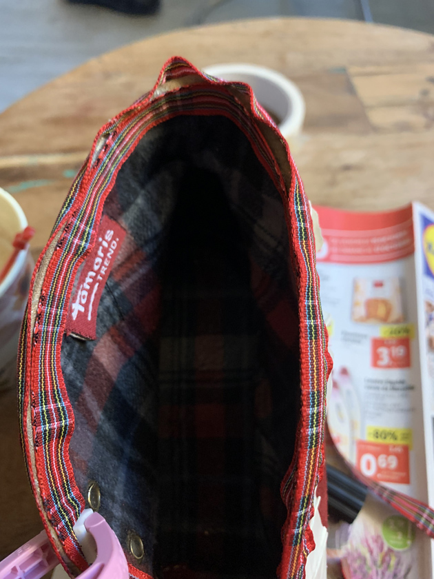 - Bottes : Tamaris (60€ – vide stock marché Prado)