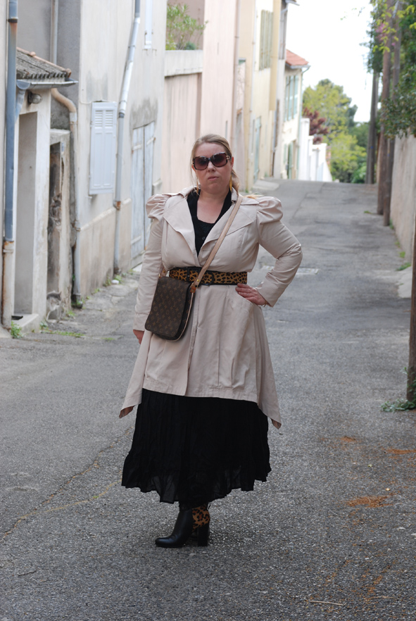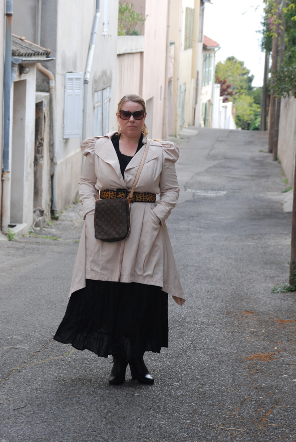 sac à patates, je la cintre toujours, ici avec une ceinture vintage.