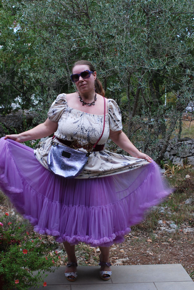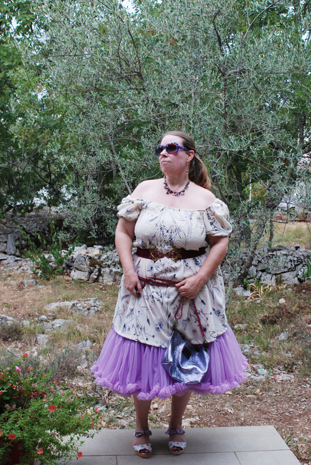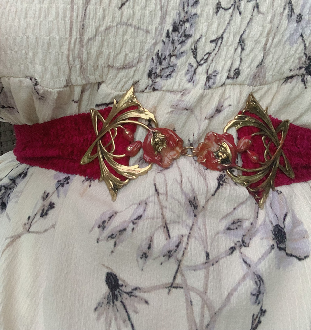 pas finir à moitié nue, en attendant j’ai mis un caraco et une broche vintage .