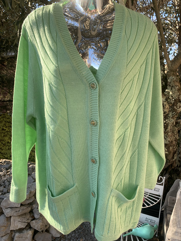 Une petite veste tricotée main jaune vintage, vinted 12€