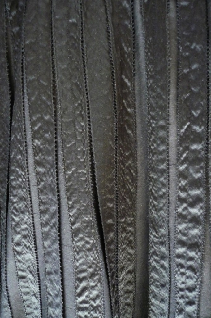Entièrement drapée avec un côté mat et un satiné. En soie, entièrement doublée. Lavage à la main.Ouverture par fermeture éclair invisible sur le côté.